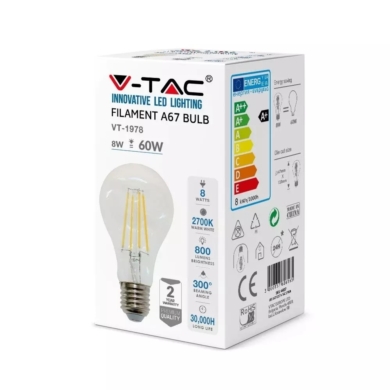 Żarówka LED V-TAC 8W Filament E27 A67 VT-1978 2700K 800lm