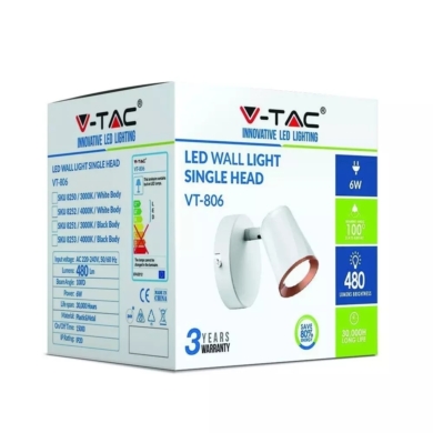 Kinkiet V-TAC 6W LED Biały VT-806 3000K 480lm