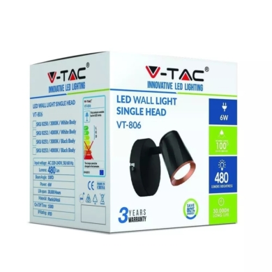 Kinkiet V-TAC 6W LED Czarny VT-806 3000K 480lm
