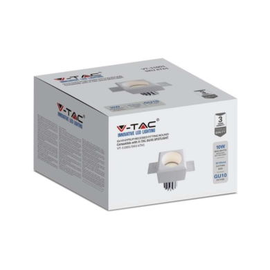 Oprawa Gipsowa Oczko Sufitowe V-TAC GU10 Białe Kwadrat 80x80 VT-11001 3 Lata Gwarancji SKU 6761 VT-11001