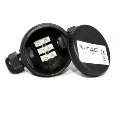 Puszka Złączka Mufa Hermetyczna Czarna 3Pin 24A AC:450V Średnica przewodu 5-9mm IP66 V-TAC VT-881 SKU 5987 VT-881
