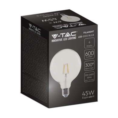 Żarówka LED V-TAC 6W Filament E27 Kula Glob G125 Bursztyn 125x173mm VT-2126 1800K 400lm SKU 217328 VT-2126