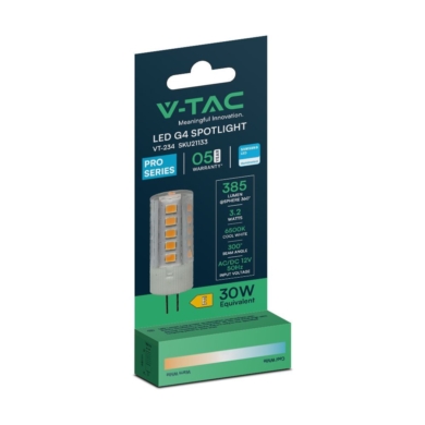 Żarówka LED V-TAC SAMSUNG CHIP 3.2W G4 12V VT-234 6400K 385lm 5 Lat Gwarancji