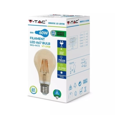 Żarówka LED SMART WiFi V-TAC 7W E27 Filament A60 Amazon Alexa Google Home VT-5137 2700K-6500K 806lm SKU 3001 VT-5137