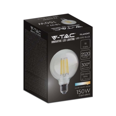 Żarówka LED V-TAC 4,8W Filament E27 Kula Glob G95 Bursztyn 95x138mm VT-2075 2200K 300lm SKU 217217 VT-2075