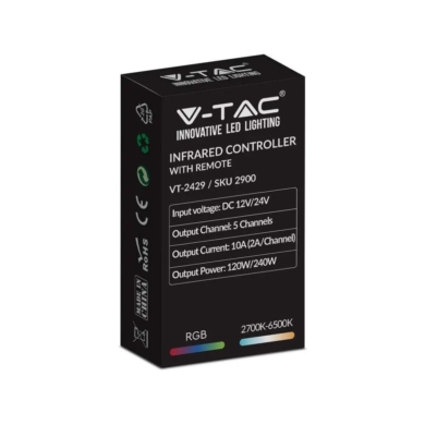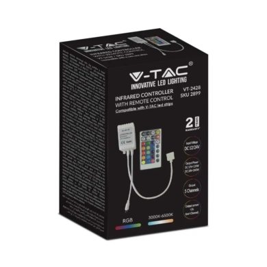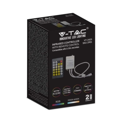 Sterownik Taśm V-TAC LED CCT MONO Jednokolorowy 12V/24V Podczerwień 24 Przyciski VT-2425 SKU 2901 VT-2425