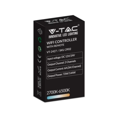 Sterownik Taśm V-TAC LED CCT MONO Jednokolorowy 12V/24V WiFi + RF Radiowy 24 Przyciski VT-2427 SKU 2902 VT-2427