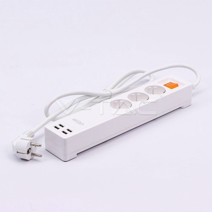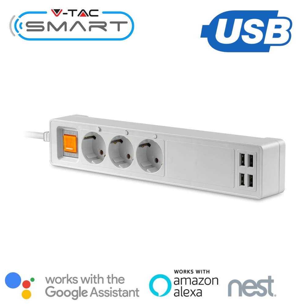 Listwa Przedłużacz 3-gniazda 4 Porty USB V-TAC SMART WiFi Amazon Alexa, Google Home, Nest VT-5018