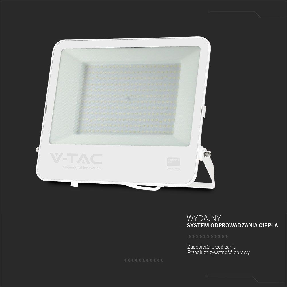 Projektor LED V-TAC 200W 100Lm/W Przewód 1mb SAMSUNG CHIP Biały VT-44204 6500K 17540lm 5 Lat Gwarancji