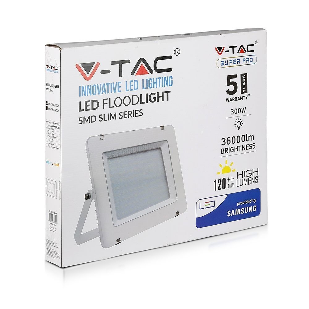 Projektor LED V-TAC 300W SAMSUNG CHIP SLIM Biały 120Lm/W VT-306 6400K 36000lm 5 Lat Gwarancji