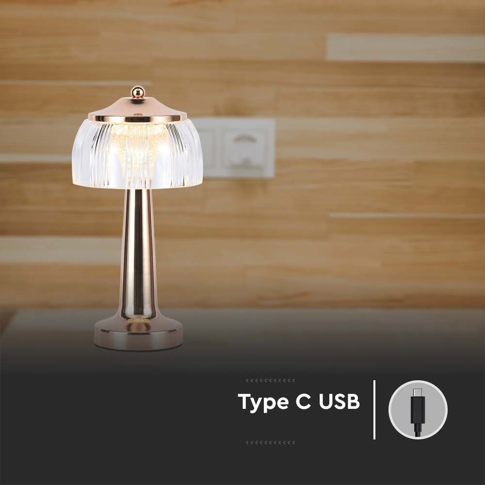Lampka Biurkowa Nocna V-TAC 1W LED 26cm Ładowanie USB Ściemnianie Złota VT-1048 3000K-6000K 55lm
