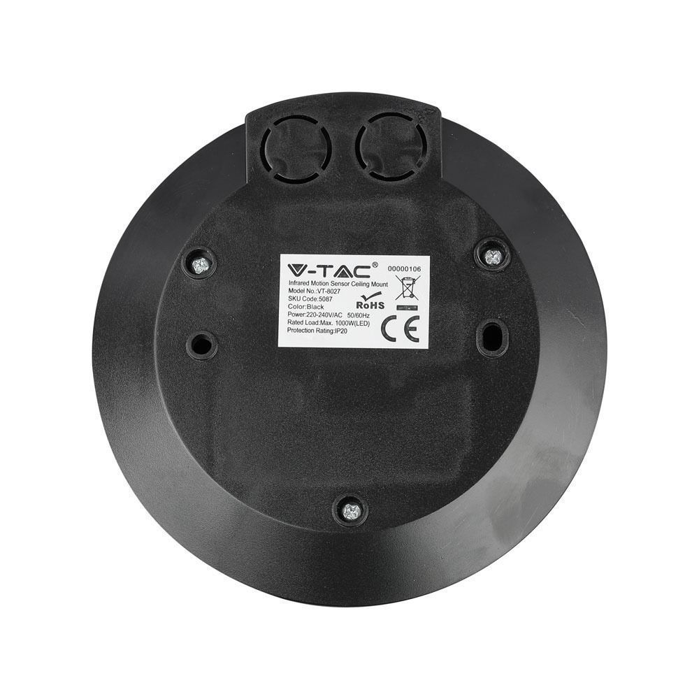 Czujnik Ruchu 360st Sufitowy Płaski Czarny V-TAC VT-8027