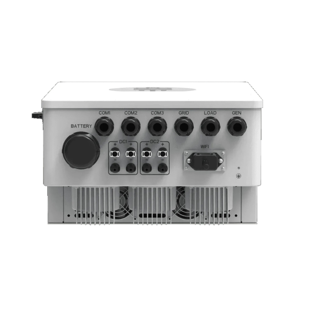 • Wbudowany port dla agregatu prądotwórczego, agregat ma możliwość doładowywania akumulatora baterii, dzięki czemu system działa automatycznie 24/7 ( możliwość sterowania załączeniem agregatu przez falownik )