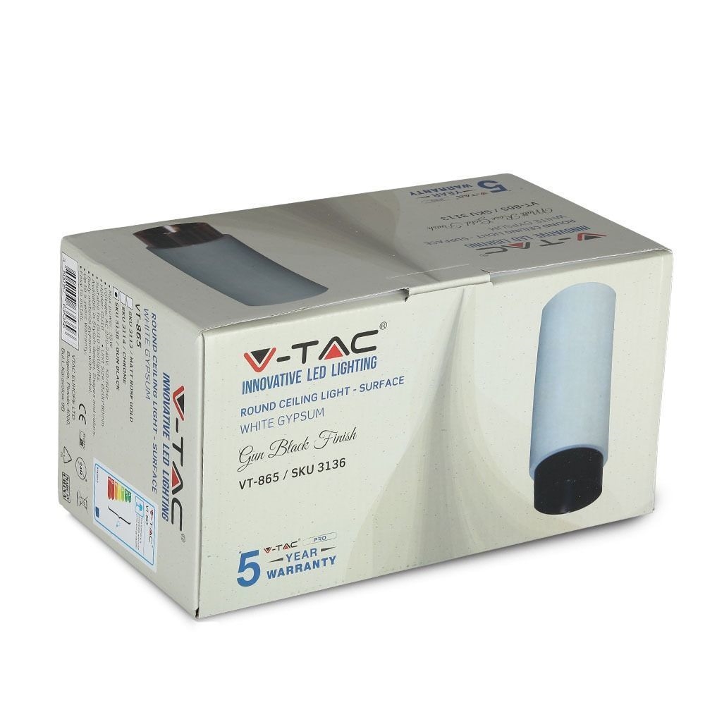 Oprawa V-TAC GIPS BETON GU10 Natynkowa Biały/Czarny Mat VT-865-GBM 5 Lat Gwarancji