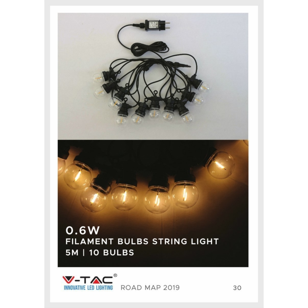 Girlanda Ogrodowa V-TAC (sznur) 6W LED 5 metrów 10 żarówek 0,4W Filament VT-71510 3000K 350lm