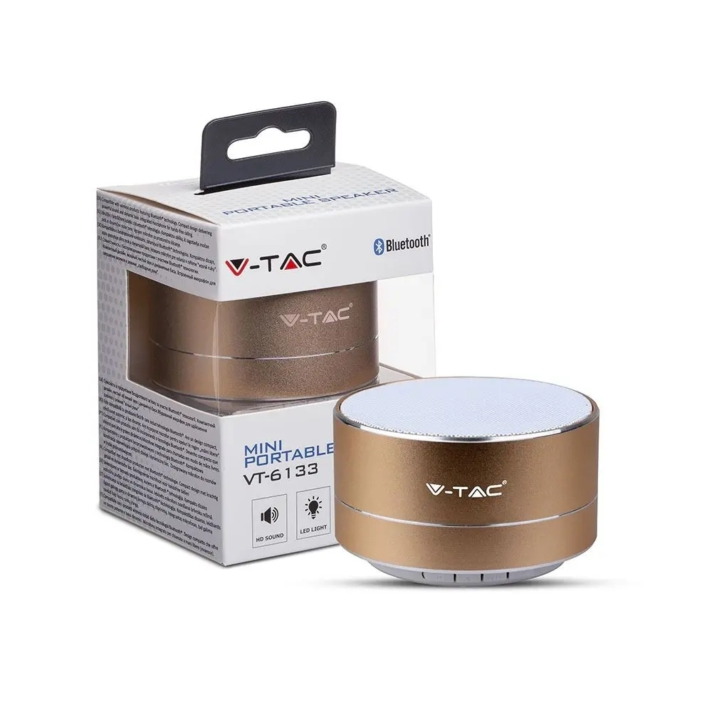 Przenośny Metalowy Głośnik Bluetooth Micro SD Mikrofon 400mAh Złoty V-TAC VT-6133