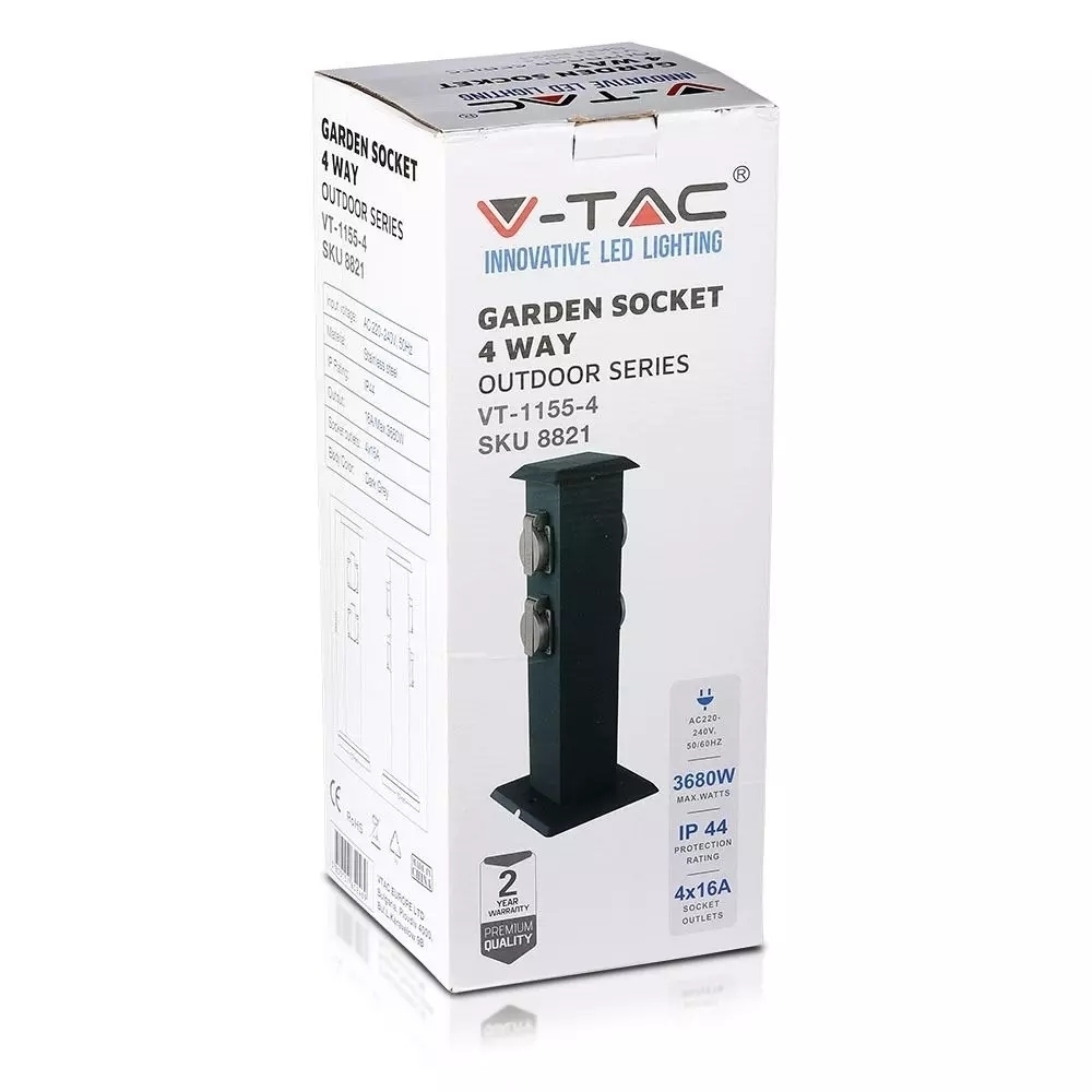 Słupek Ogrodowy V-TAC 4 Gniazda 40cm 4x16A 3600W IP44 Grafit VT-1155-4