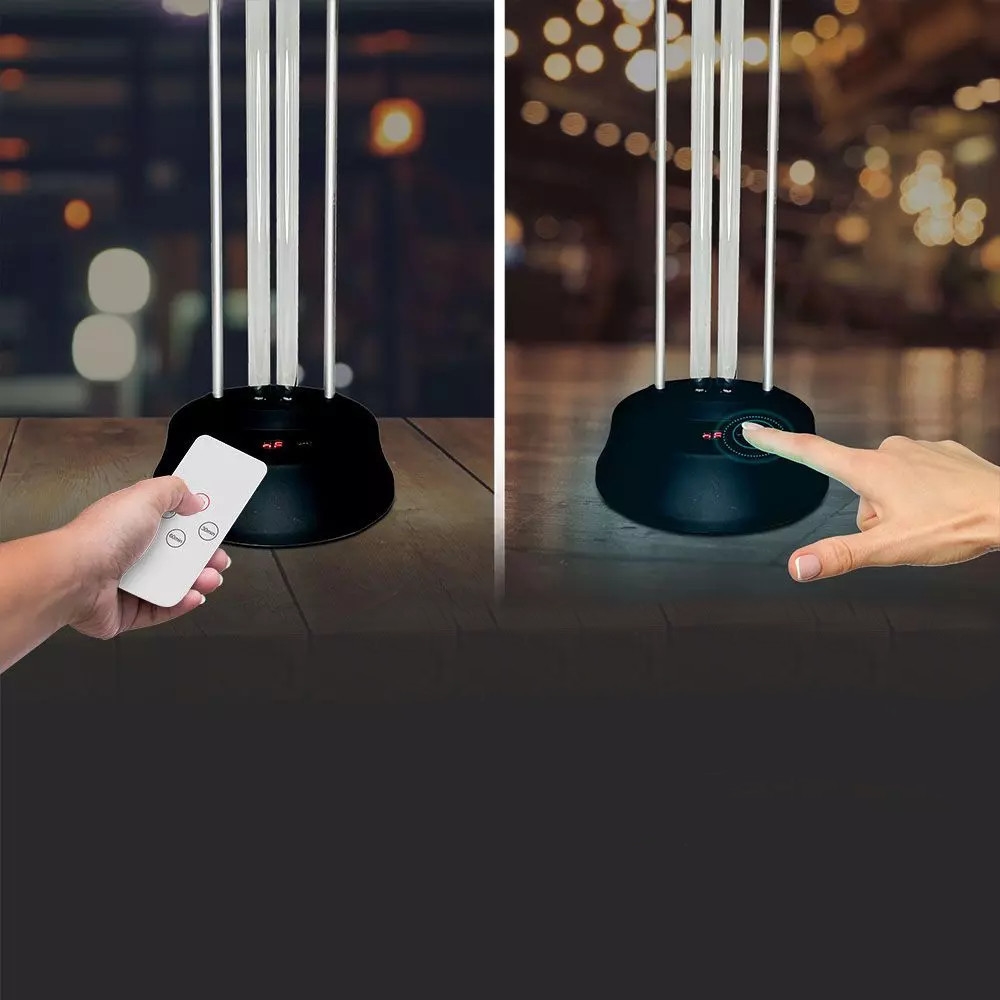Ich silne oddziaływanie mogłoby zaszkodzić osobom i zwierzętom znajdującym się w pomieszczeniu , dlatego przed uruchomieniem urządzenia należy zadbać, aby wszyscy opuścili daną salę. Mamy na to 30 sekund, lampa posiada wbudowane opóźnienie startu o 30 sekund z akustycznym sygnalizatorem konieczności opuszczenia pomieszczenia. Po 30 minutach automatyczny timer wyłączy urządzenie.