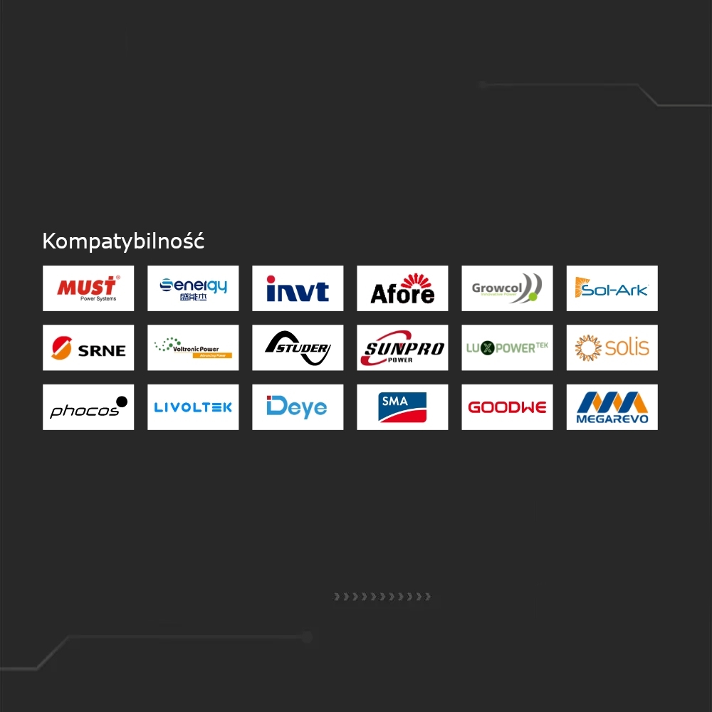 Kompatybilny z falownikami DEYE i większością falowników nisko napięciowych (informacje w załączniku)