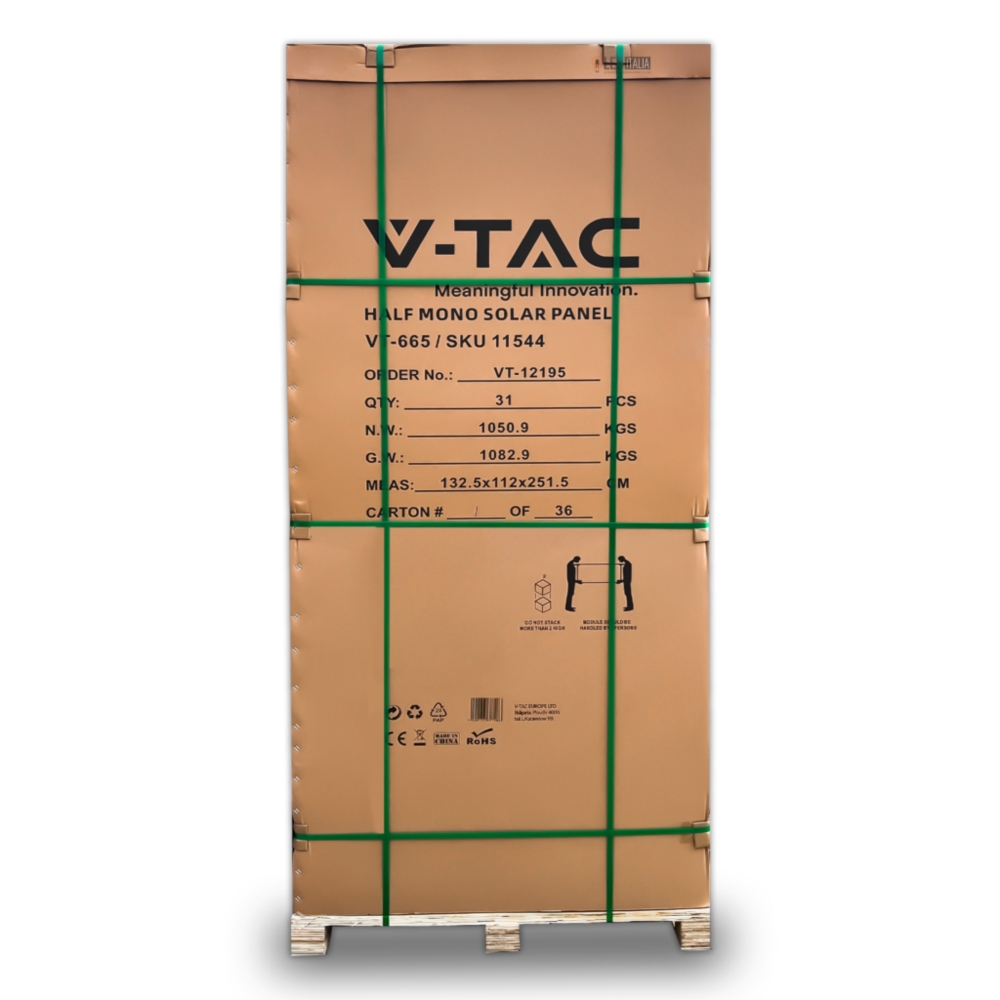 Moduł Panel Fotowoltaiczny V-TAC AUSTA 665W HALF CELL (Paleta 31szt) SKU11544 20,6KW VT-665 30 Lat Gwarancji