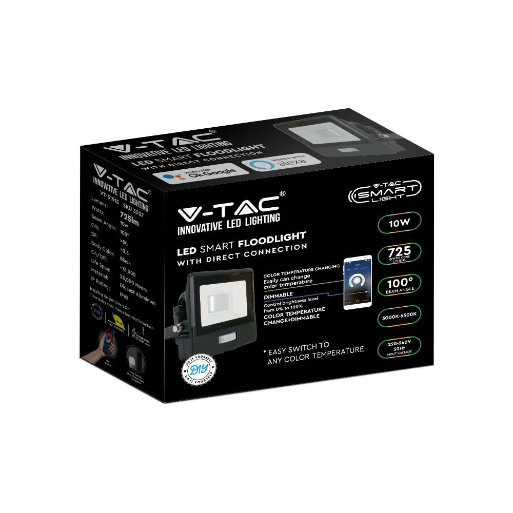 Projektor LED WiFi V-TAC 10W Czujnik Ruchu Czarny Z MUFĄ SMART Amazon Alexa Google Home VT-5191S RGB+3000K-6500K 725lm