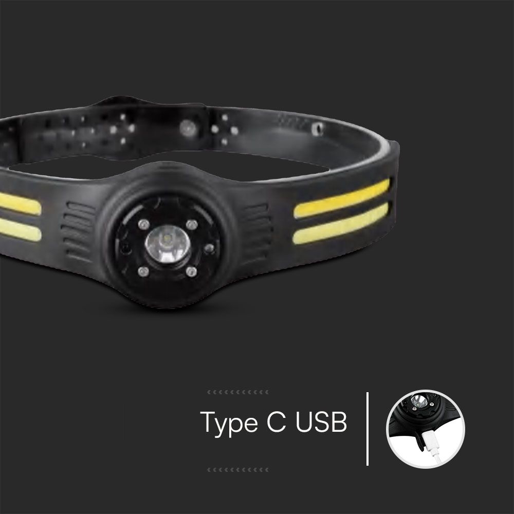 Wielofunkcyjna latarka czołowa V-TAC z funkcją ładowania USB-C
