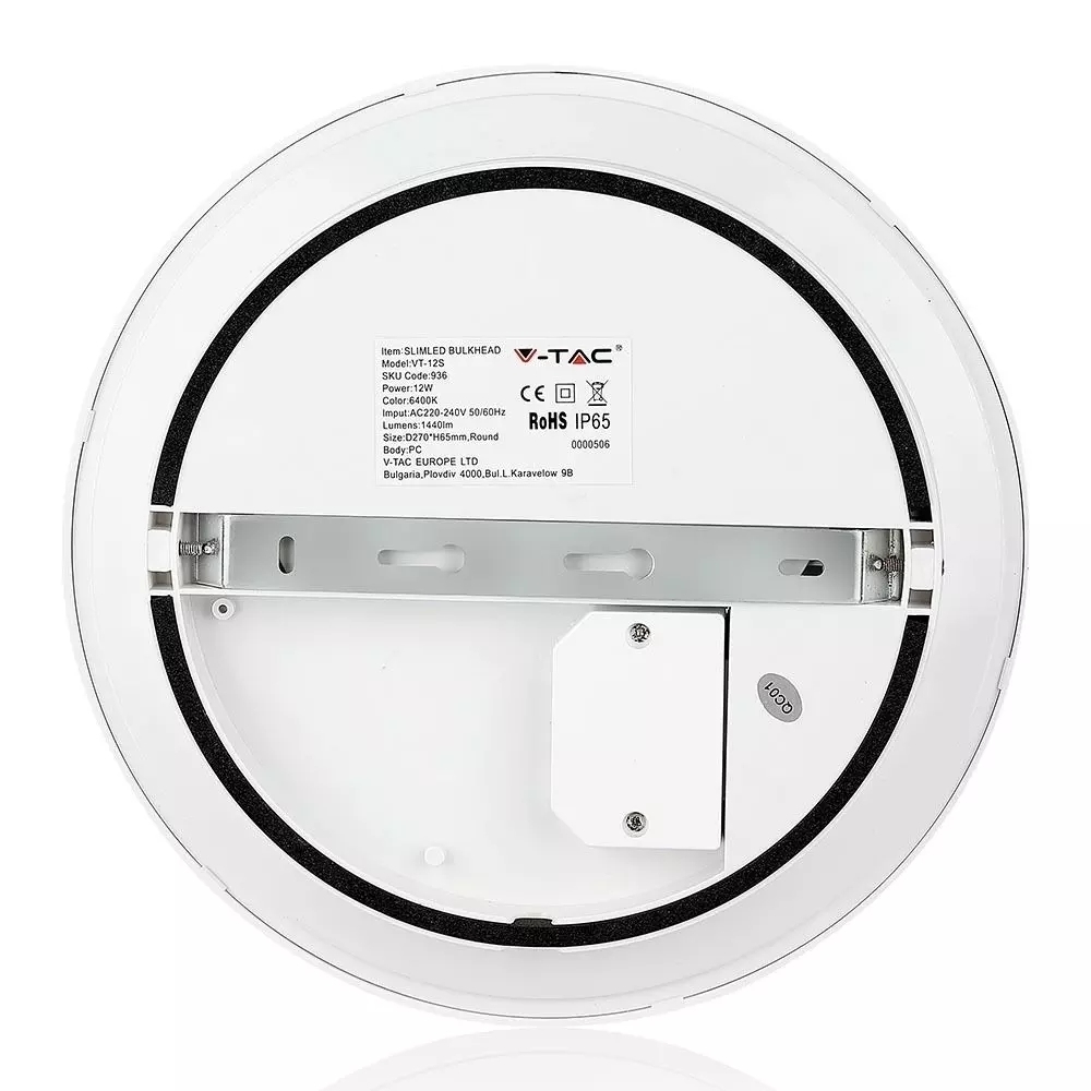 Plafon LED V-TAC Czujnik Mikrofalowy SAMSUNG CHIP 12W SLIM IP65 fi27cm VT-12SS 3000K 1440lm 5 Lat Gwarancji