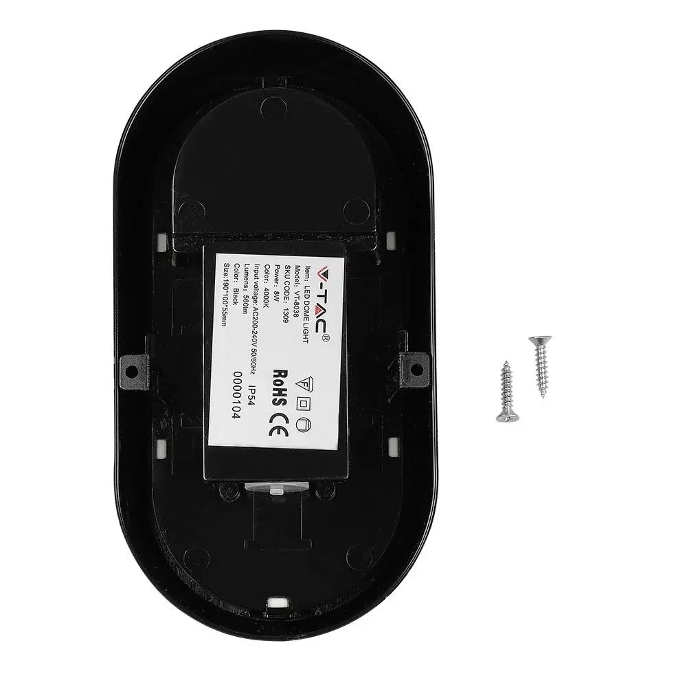 Oprawa Owalna V-TAC Plafon 8W (Kanałowa) Czarna IP54 VT-8038-B 3000K 560lm