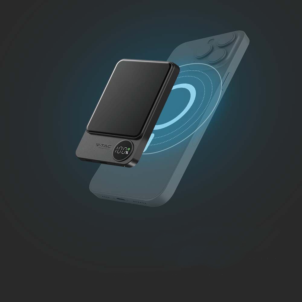 Power Bank V-TAC 10000mAh Szary Magnetyczny 9mm Aluminium, Lightning, LCD, SZYBKI 20W V-TAC VT-100011-SG