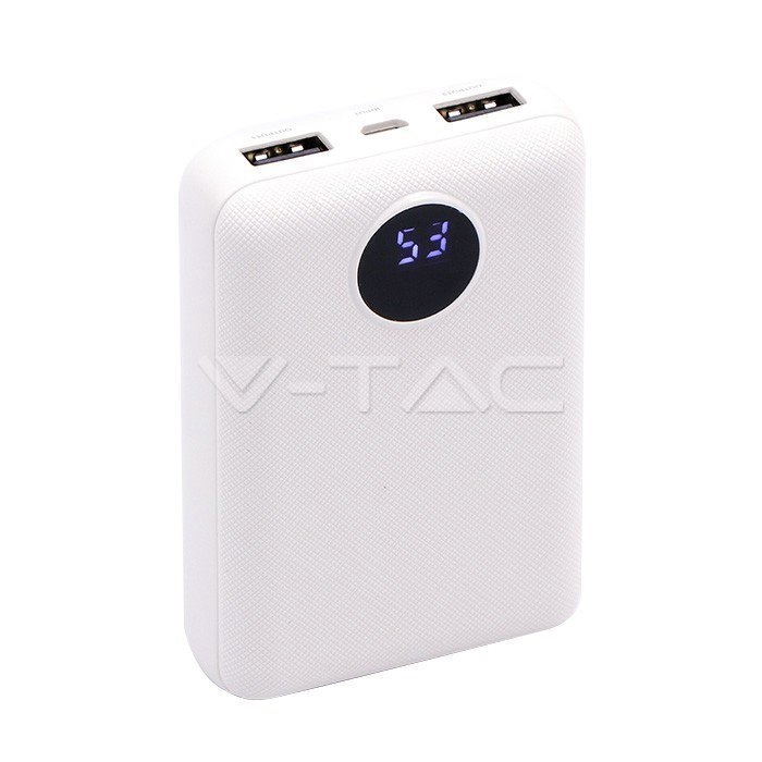 Power Bank V-TAC 10000mAh z wyświetlaczem Biały 63x94x25mm VT-3501