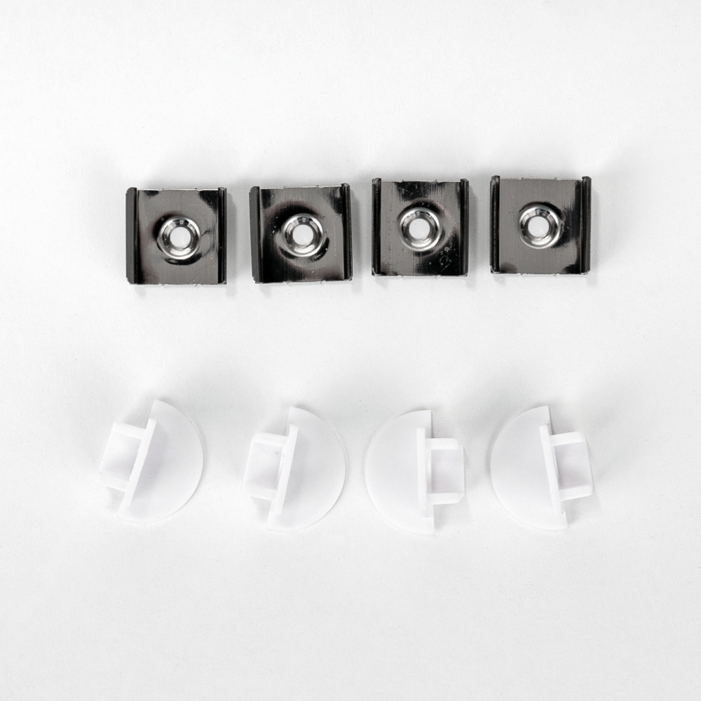 W zestawie, profil 2 metry, zaślepki końcowe, uchwyty montażowe oraz klosz mleczny