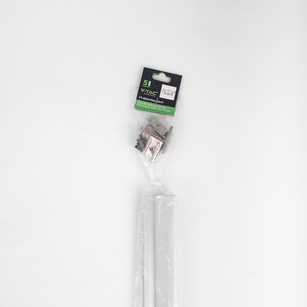 W zestawie, profil 2 metry, zaślepki końcowe, uchwyty montażowe oraz klosz mleczny