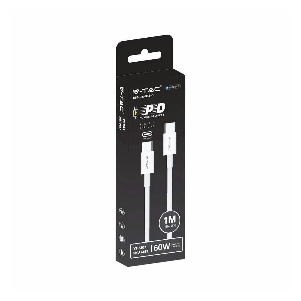 Przewód Type C do Typ C USB 1Mb Biały High Speed 60W V-TAC VT-5303-W