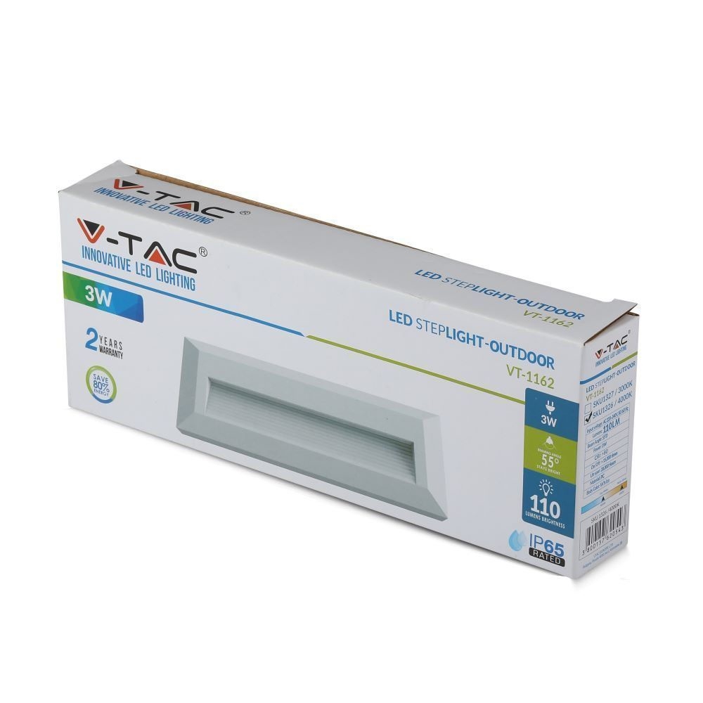 Oprawa Schodowa 3W LED V-TAC Biały Prostokąt 230V IP65 VT-1162 4000K 110lm