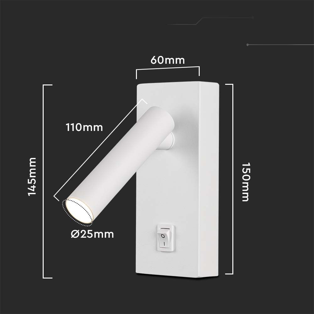 Oprawa LED V-TAC 2W Kinkiet Hotel Łóżko Włącznik Biały VT-402 4000K 150lm