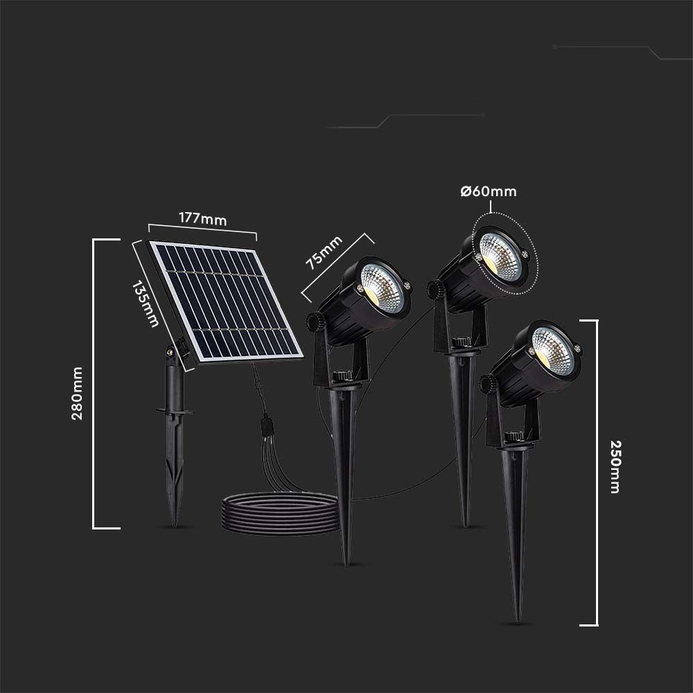 Oprawa Gruntowa Ogrodowa Wbijana LED V-TAC Solarna Zestaw 3x1.2W IP65 VT-11032 3000K 50lm 3 Lata Gwarancji