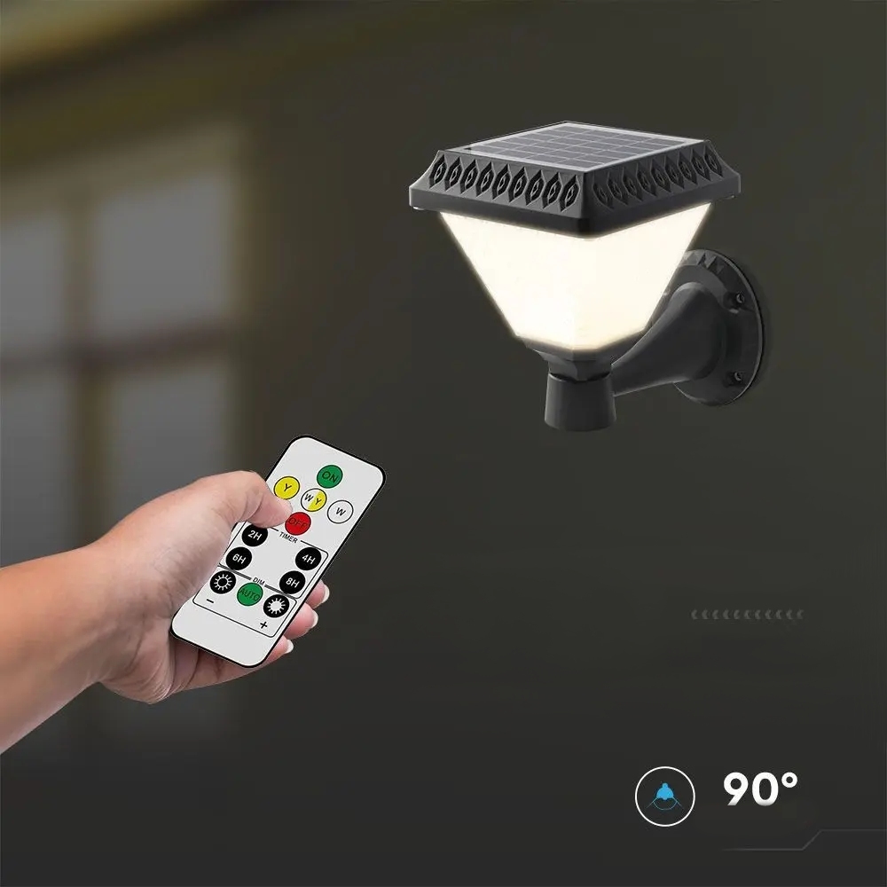 Kinkiet Ogrodowy V-TAC Solarny z pilotem 3w1 IP44 Czarny Kwadrat VT-972 3000K-4000K-6400K 75 3 Lata Gwarancji