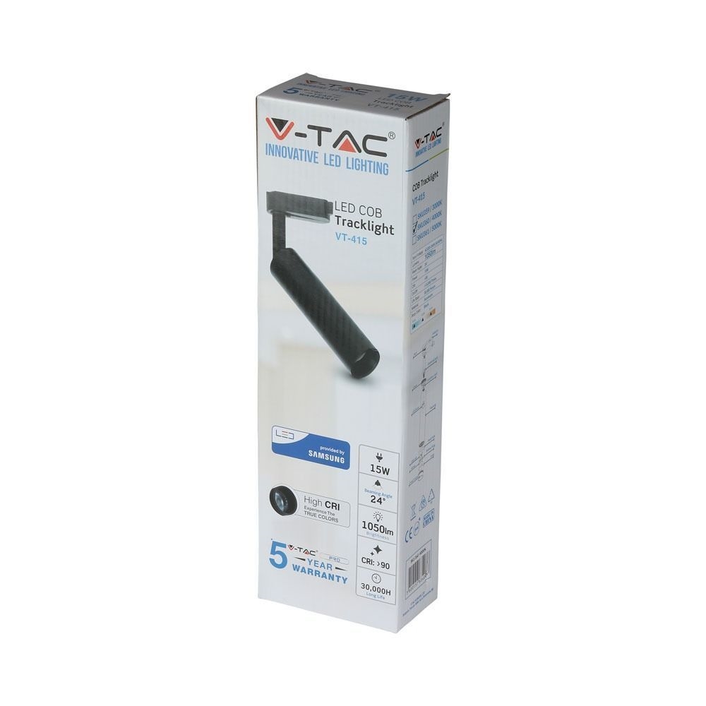 Oprawa 15W LED V-TAC Szynosystem 3F SAMSUNG CHIP CRI90+ Czarna VT-415-B 3000K 1200lm 5 Lat Gwarancji