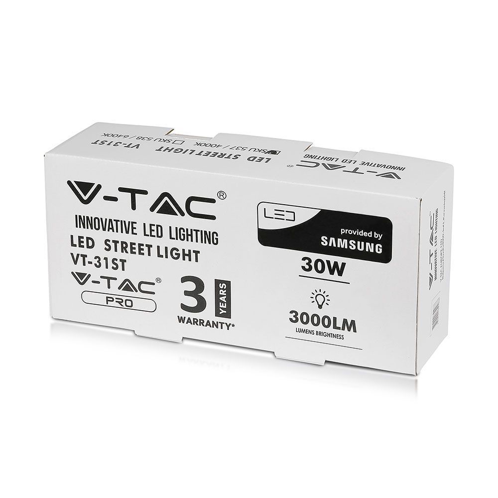 Oprawa Uliczna LED V-TAC SAMSUNG CHIP 30W VT-31ST 6000K 3000lm 3 Lata Gwarancji