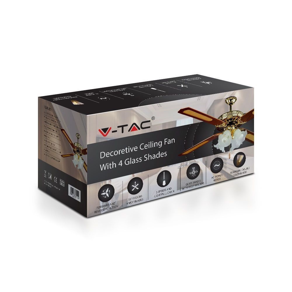 Wentylator Sufitowy V-TAC 132cm Brąz 4xE27 3 Biegi VT-6056-4